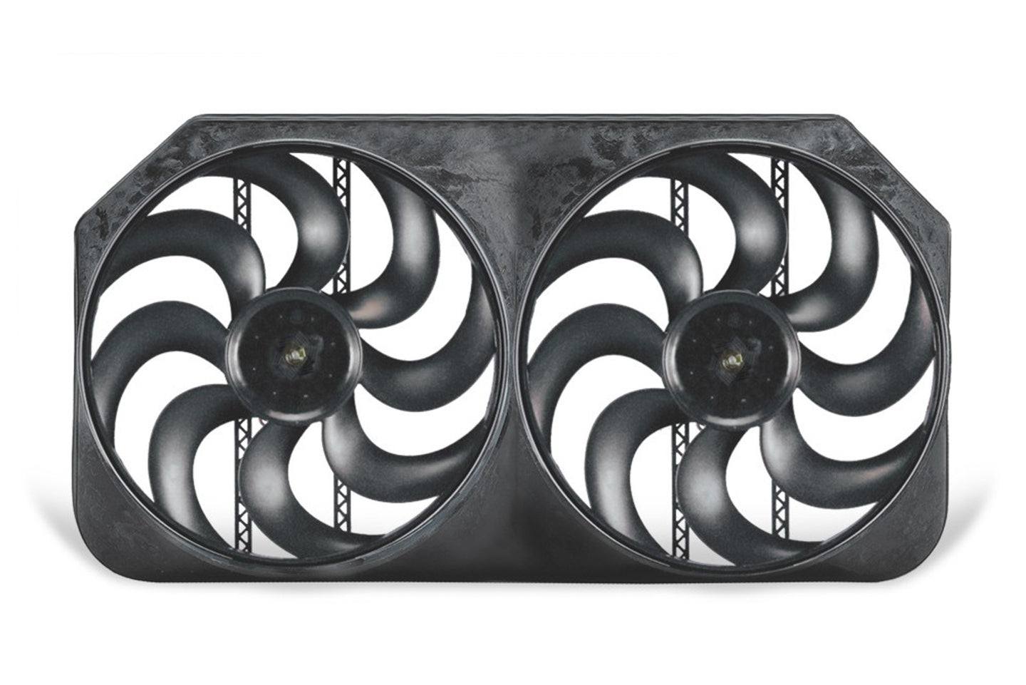 Electric Cooling Fan - Direct-Fit - Dual 15 in Fan - Puller - 6000 CFM - 12V - Curved Blade - Controller - Plastic Shroud - GM Duramax - GM Fullsize Truck 2001-05 - Kit