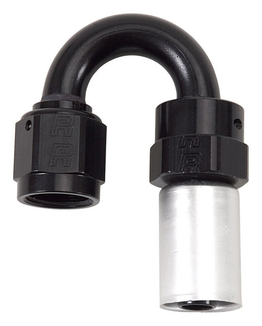 #6 180 Deg Hose Fitting P/C Crimp-On Fitting - Hose End - Crimp-On - 180 Degree - 6 AN Hose Crimp to 6 AN Female - Aluminum - Black / Silver Anodized - EachRegular price $16.95