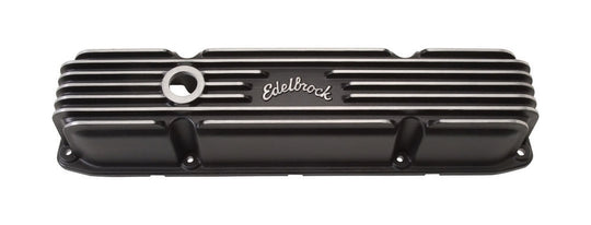 BBM Classic Finned V/C's - Black Valve Cover - Classic - Tall - Breather Hole - Edelbrock Logo - Aluminum - Black Powder Coat - Mopar B / RB-Series - PairRegular price $401.95 -