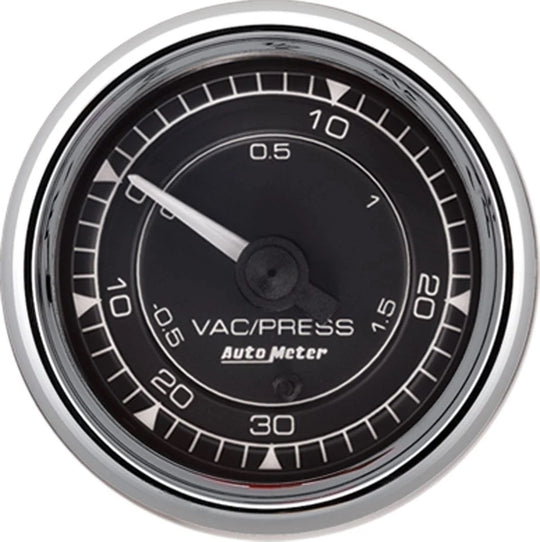Vendor: AUTOMETER 2/16 Chrono Chrome Gauge Vac/Boost 30HG/30PSI 2/16 Chrono Chrome Gauge Vac/Boost 30HG/30PSI Boost / Vacuum Gauge - Chrono Series - 0-30 psi - Mechanical - Analog - 2-1/16 in Diameter - Black Face - EachRegular price $129.99