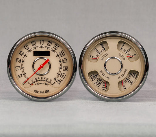 Woodward 2 Gauge Kit Speed/Tach Quad Gauges Upgrade your dashboard with the New Vintage USA 37215-02 Woodward 2 Gauge Kit, featuring an elegant beige face that adds a touch of sophistication to any vehicle. This kit...Regular price $699.99