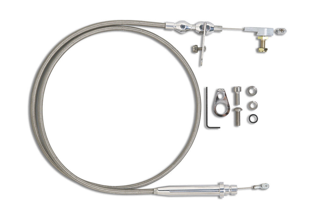 Kickdown Cable - Hi-Tech - Adjustable Length - Braided Stainless Housing - Aluminum Fittings - Polished - TH350 - Kit