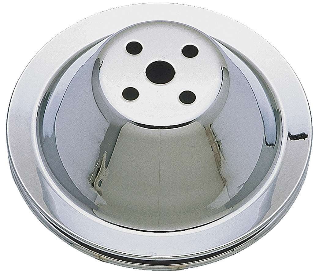 Sb Chevy Sngl Swp Upper Water Pump Pulley - V-Belt - 1 Groove - 7.1 in Diameter - Steel - Chrome - Short Water Pump - Small Block Chevy - Each