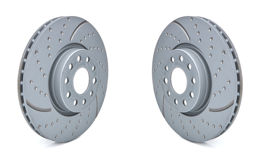 Brake Rotor - GD Sport - Front - Directional / Dimpled / Slotted - 12.300 in OD - Iron - Gray Paint - Audi 2006-24 / Volkswagen 2005-24 - Pair