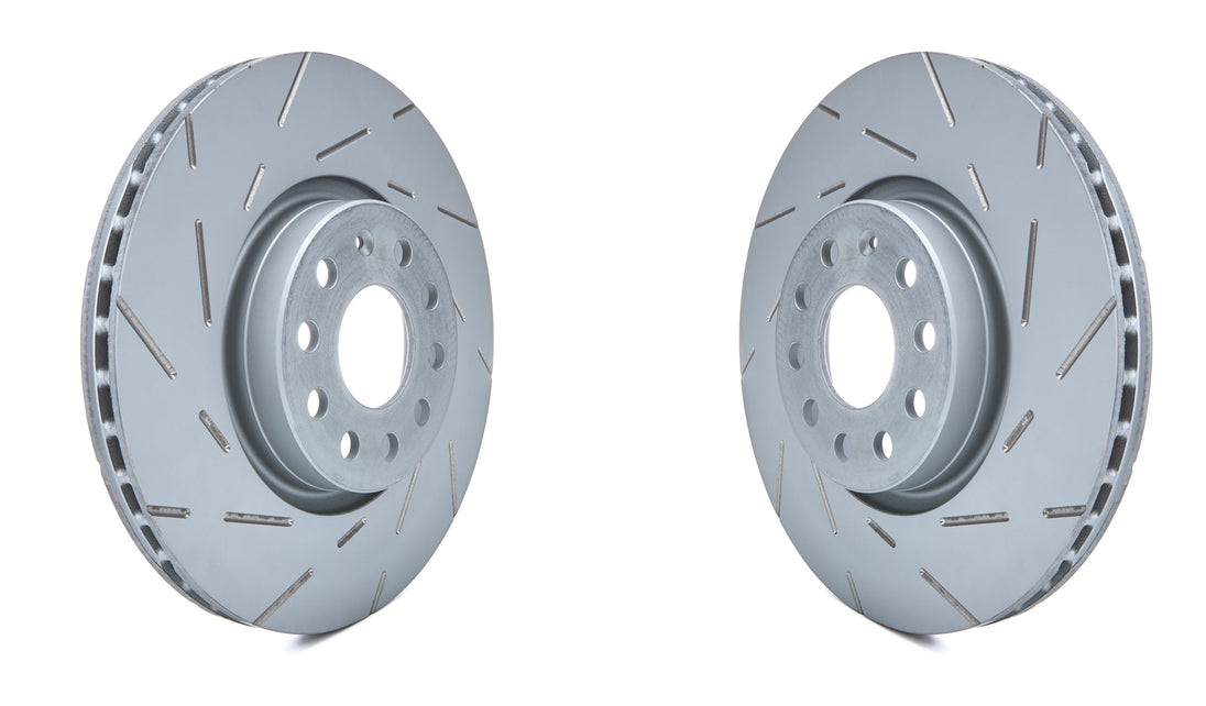 Brake Rotor - USR Series - Front - Directional / Dimpled / Slotted - 12.300 in OD - Iron - Gray Paint - Audi 2006-24 / Volkswagen 2005-24 - Pair