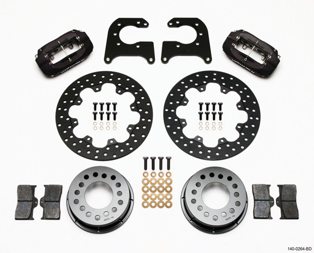 D/L Drag Rear Brake Kit Olds/Pont Brake System - Forged Dynalite Drag - Rear - 4 Piston Caliper - 11.440 in Drilled Steel Rotor - Offset - Aluminum - Gray Anodized - BOP 1964-70 - Kit