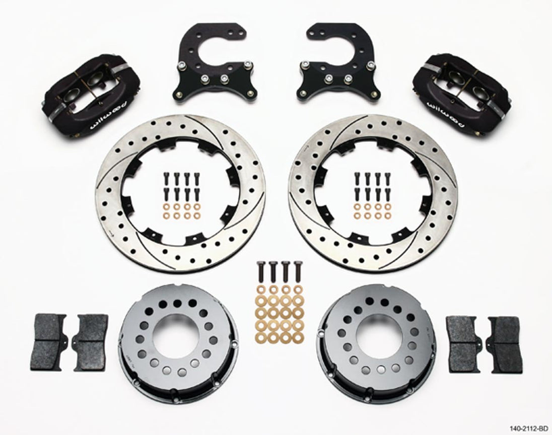 Disc Brake Kit 12 Bolt Chevy Brake System - Dynalite - Rear - 4 Piston Caliper - 12.000 in Drilled / Slotted Iron Rotor - Offset Hat - Aluminum - Black Powder Coat - GM 12-Bolt - Kit