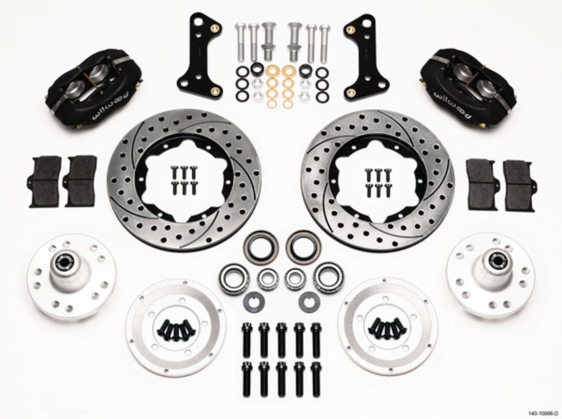 Front Kit MD Camaro Brake System - Dynalite - Front - 4 Piston Caliper - 11.000 in Drilled / Slotted Iron Rotor - Offset - Aluminum - Black Powder Coat - GM A-Body / F-Body / X-Body 1964-74 - Kit