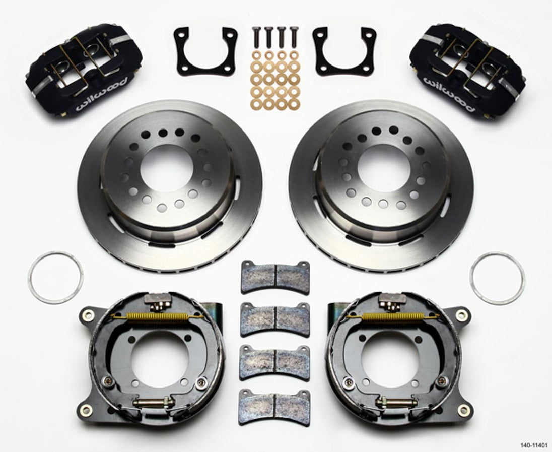 Rear Disc Brake Kit w/ Park Brake 12 Bolt GM Brake System - Dynapro Low-Profile - Rear - 4 Piston Caliper - 11.000 in Plain Iron Rotor - Aluminum - Black Powder Coat - GM 12-Bolt - Kit