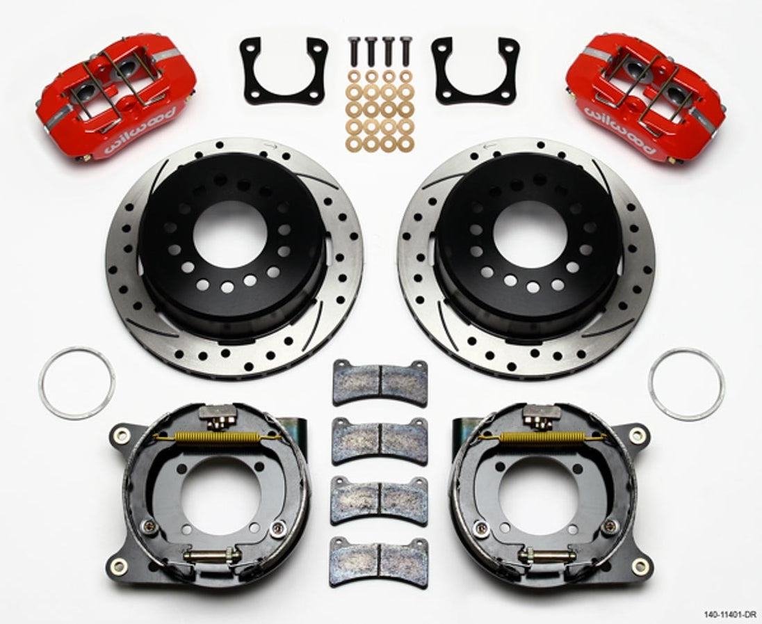 Brake System - Dynapro Low-Profile - Rear - 4 Piston Caliper - 11.000 in Slotted / Drilled Iron Rotor - Aluminum - Red Powder Coat - GM 12-Bolt - Kit
