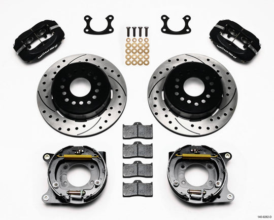P/S Park Brake Kit Small Ford 2.50in Brake System - Dynalite - Rear - 4 Piston Caliper - 12.000 in Drilled / Slotted Iron Rotor - Offset Hat / Parking Brake - Aluminum - Black Powder...Regular price $1,196.93 -