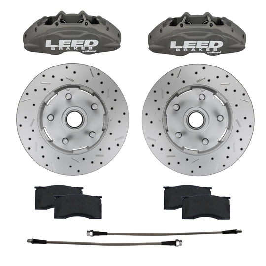 64 - 67 Mustang Brake Caliper/Pad/Rotor Kit Brake System - MaxGrip Lite - Front - 4 Piston Caliper - 11.33 in Drilled / Slotted Rotor - Pads / Calipers Included - Aluminum - Gray Powder Coat...Regular price $1,185.99 -