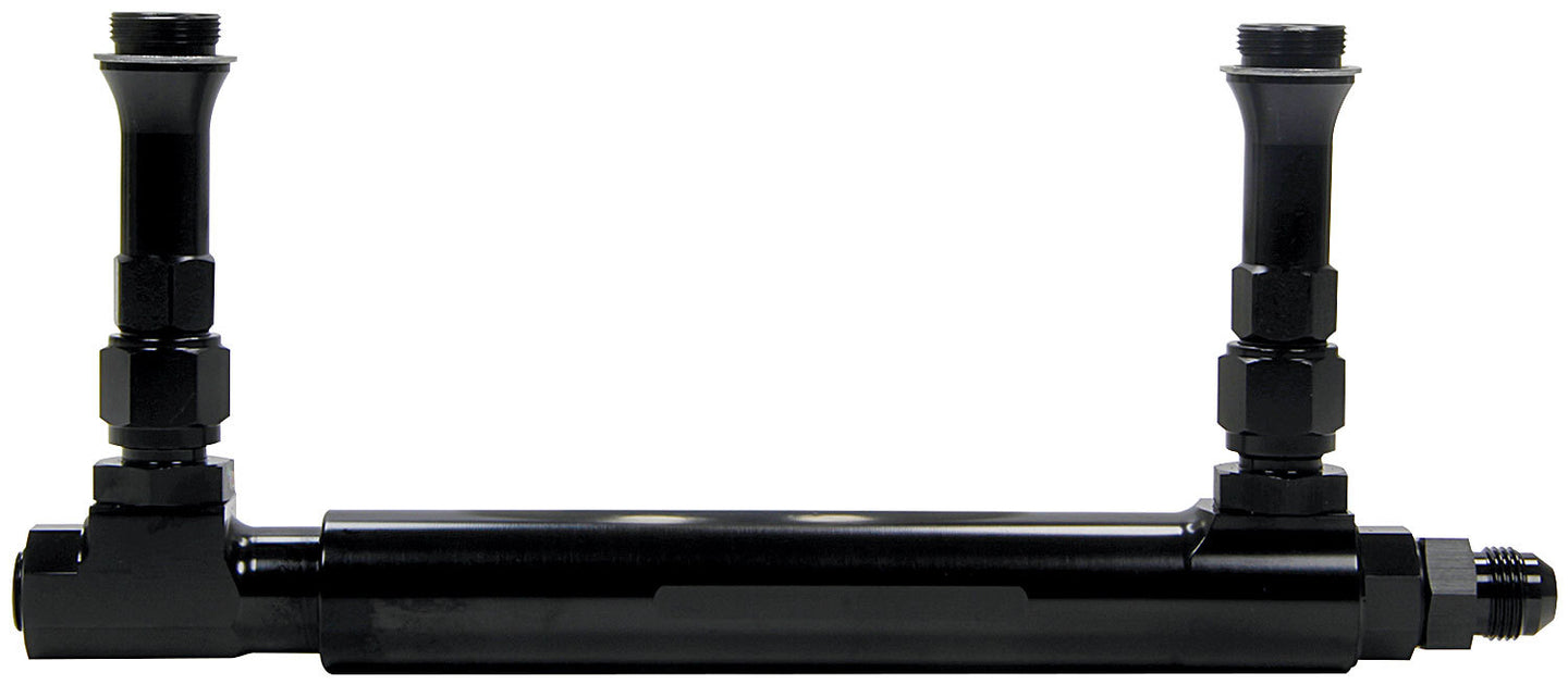 Fuel Log - Adjustable - 8 AN Male Inlet - Dual 7/8-20 in Male Outlet - 3/8 in NPT Port - Aluminum - Black Anodized - Carburetors - Each