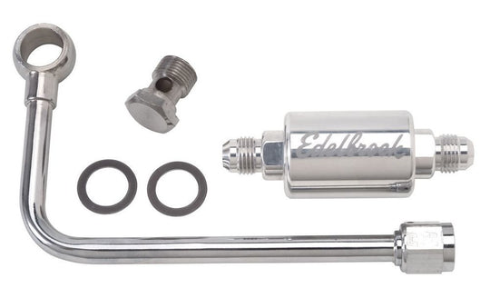Polished Fuel Line & Filter Kit Carburetor Fuel Line - 6 AN Female Inlet - 5/8-20 in Outlet - Polished Filter - Stainless - Chrome - Edelbrock Performer / Thunder AVS Carburetors - KitRegular price $53.95
