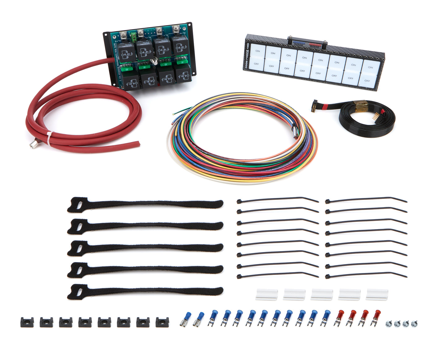 Switch Panel - Model 8003 - Overhead Mount - 8.75 x 2.375 in - 8 Flat Switches - Fused - Indicator Lights - Relay Board / Wiring Included - Carbon Fiber - Kit