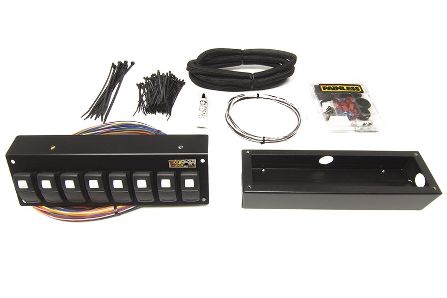 Switch Panel - Trail Rocker - Under Dash Mount - 8 Rockers - Wiring Harness - Indicator Lights - Black Powder Coat - Painless Trail Rocker System - Kit