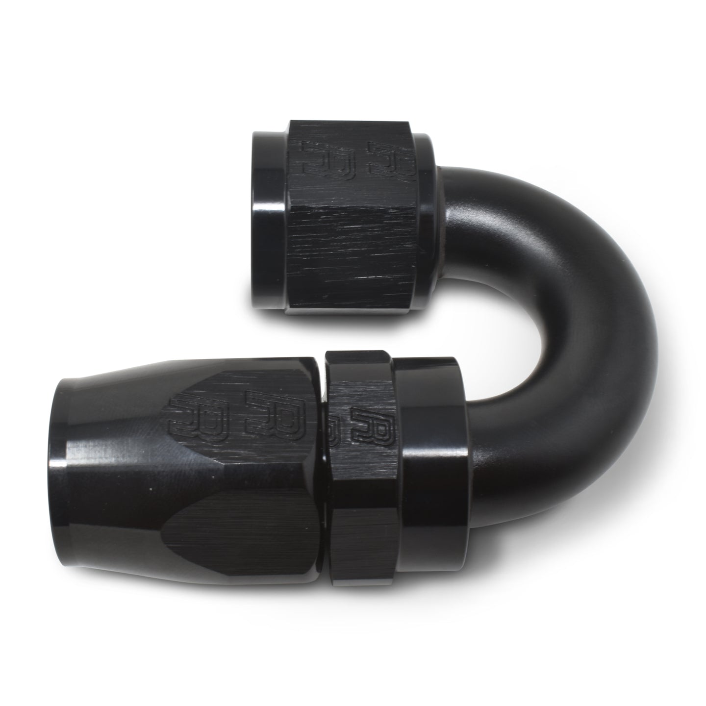 Fitting - Hose End - Full Flow - 180 Degree - Tight Radius - 6 AN Hose to 6 AN Female Swivel - Aluminum - Black Anodized - Each