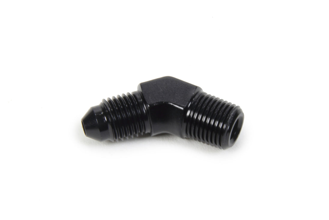 AN to NPT 45 Degree #3 x 1/8 Fitting - Adapter - 45 Degree - 3 AN Male to 1/8 in NPT Male - Aluminum - Black Anodized - Each