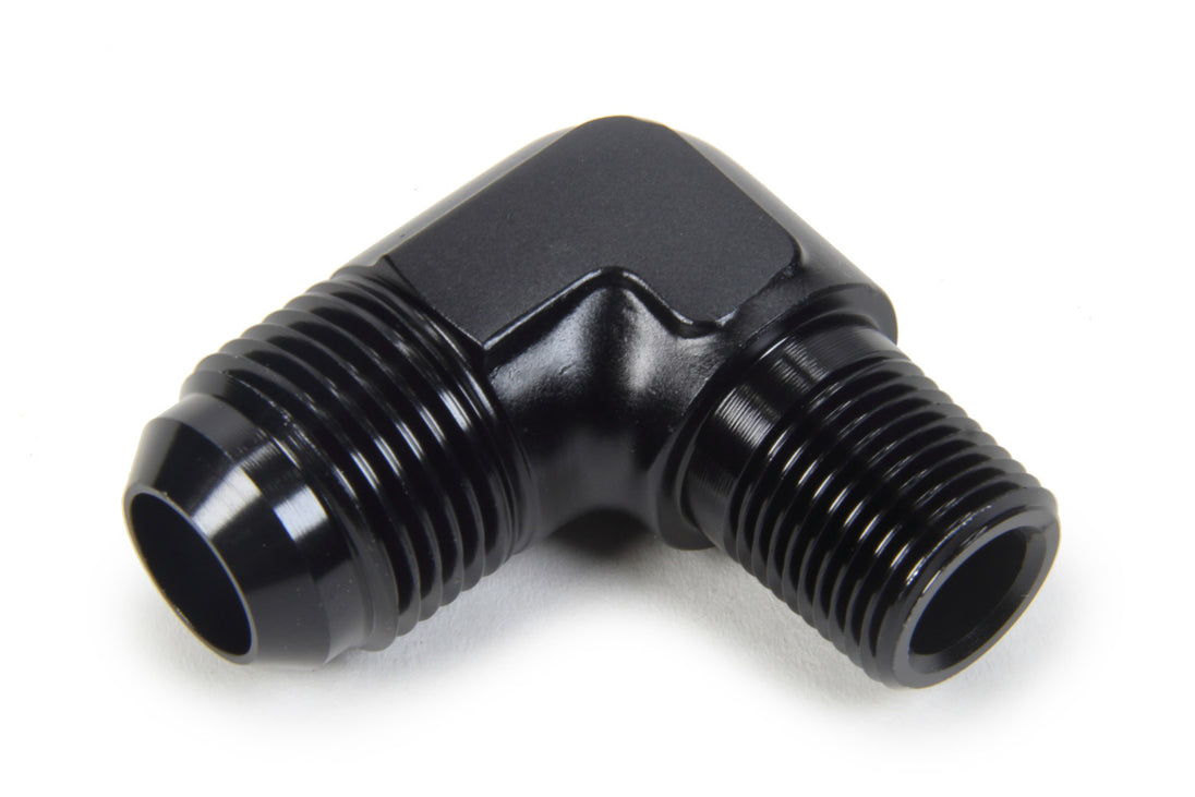 AN to NPT 90 Degree #3 x 3/8 Fitting - Adapter - 90 Degree - 3 AN Male to 3/8 in NPT Male - Aluminum - Black Anodized - Each