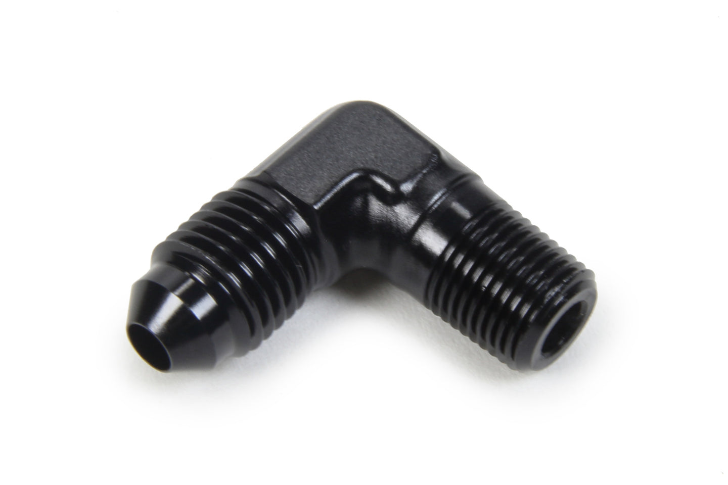AN to NPT 90 Degree #4 x 1/8 Fitting - Adapter - 90 Degree - 4 AN Male to 1/8 in NPT Male - Aluminum - Black Anodized - Each
