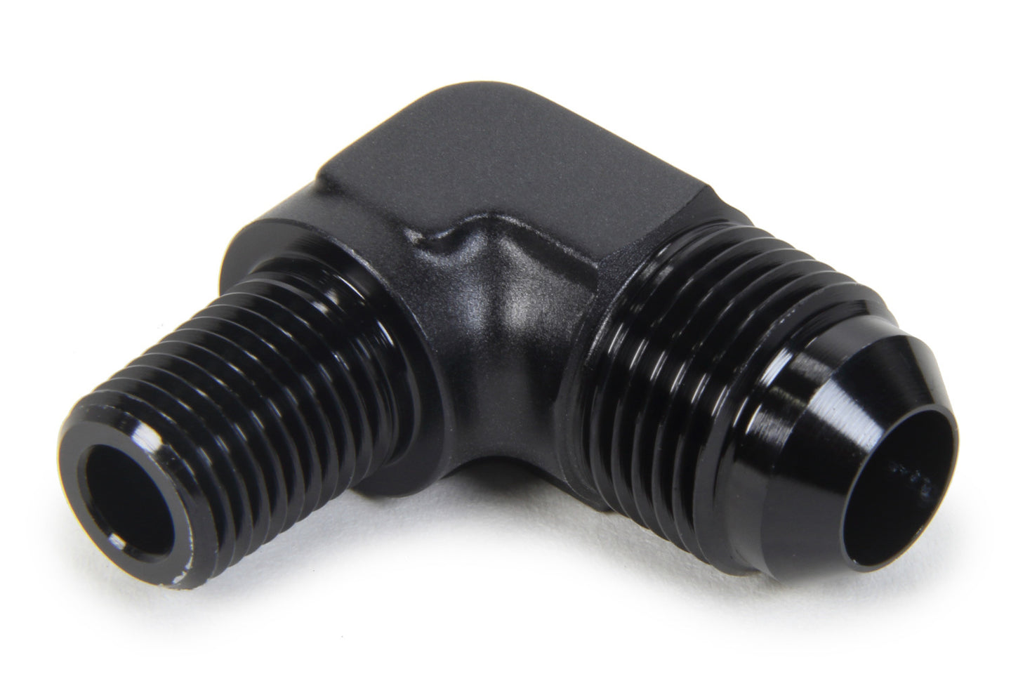 AN to NPT 90 Degree #8 x 3/8 Fitting - Adapter - 90 Degree - 8 AN Male to 3/8 in NPT Male - Aluminum - Black Anodized - Each