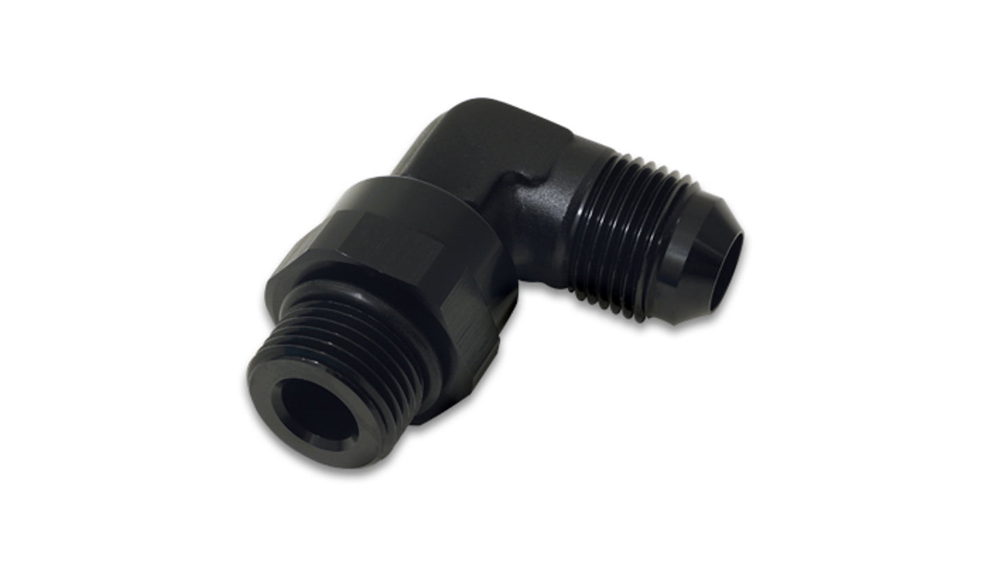 Fitting - Adapter - 90 Degree - 12 AN Male to 12 AN Male O-Ring Swivel - Aluminum - Black Anodized - Each