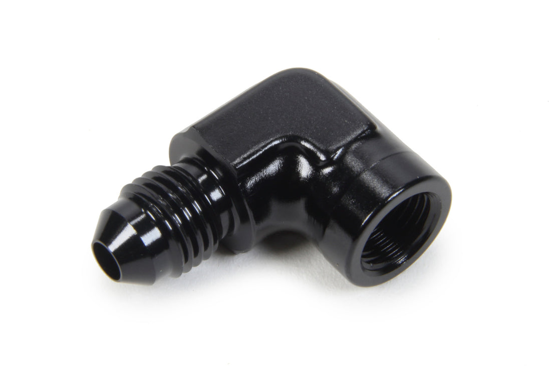 Fitting - Adapter - 90 Degree - 1/8 in NPT Female to 4 AN Male - 1/8 in NPT Female Gauge Port - Aluminum - Black Anodized - Each