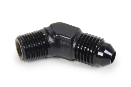 AN to NPT 45 Degree #4 x 1/8 Fitting - Adapter - 45 Degree - 4 AN Male to 1/8 in NPT Male - Aluminum - Black Anodized - EachRegular price $11.89 -