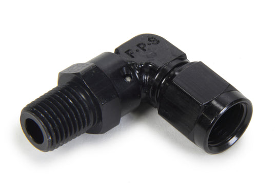 6an Female Swivel to 1/4 MPT 90-Degree Fitting Fitting - Adapter - 90 Degree - 6 AN Female Swivel to 1/4 in NPT Male - Aluminum - Black Anodized - EachRegular price $33.99 -