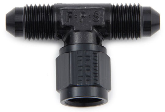Fitting #6 Tee Female Swivel On Side Black Fitting - Adapter Tee - 6 AN Female Swivel x 6 AN Male x 6 AN Male - Aluminum - Black Anodized - EachRegular price $17.99 -