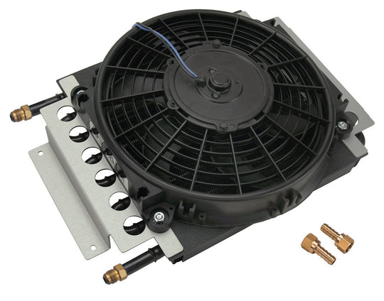 Hyper-Cool Extreme Cooler -6AN Fluid Cooler and Fan - 14.875 x 13 x 5.625 in - Plate Type - 10 AN Female Inlet / Outlet - 6 AN Male Adapters - Aluminum - Black Powder Coat...Regular price $586.52 -