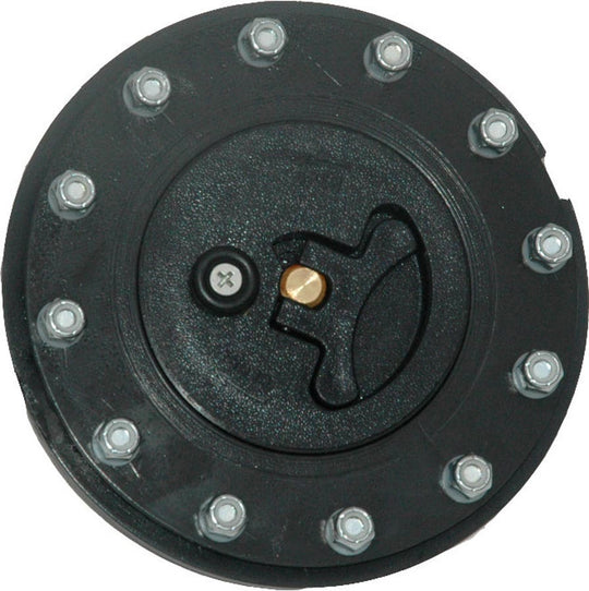 Vendor: RCI Cap Flush Mount Black Plastic 12-Bolt Cap Flush Mount Black Plastic 12-Bolt Fuel Cell Filler Cap Assembly - Twist-On - Flat Mount - 12-Bolt Flange - Plastic - Black - KitRegular price $39.99