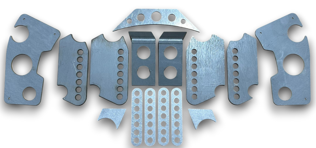 - Frame rail mount flanges have 3 x 1/8" holes to cleco in place on the frame rail for ease of mockup. Support tube holes are ovaled to support proper angle of a stock frame rail