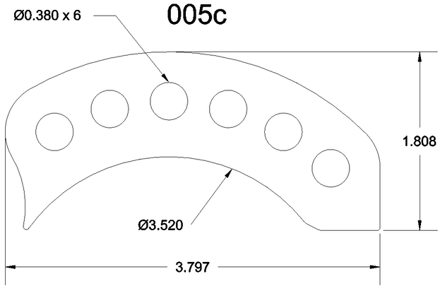 TAB 005c 6 HOLE 3/8 BORE 3.5 RADIUS- 4PK