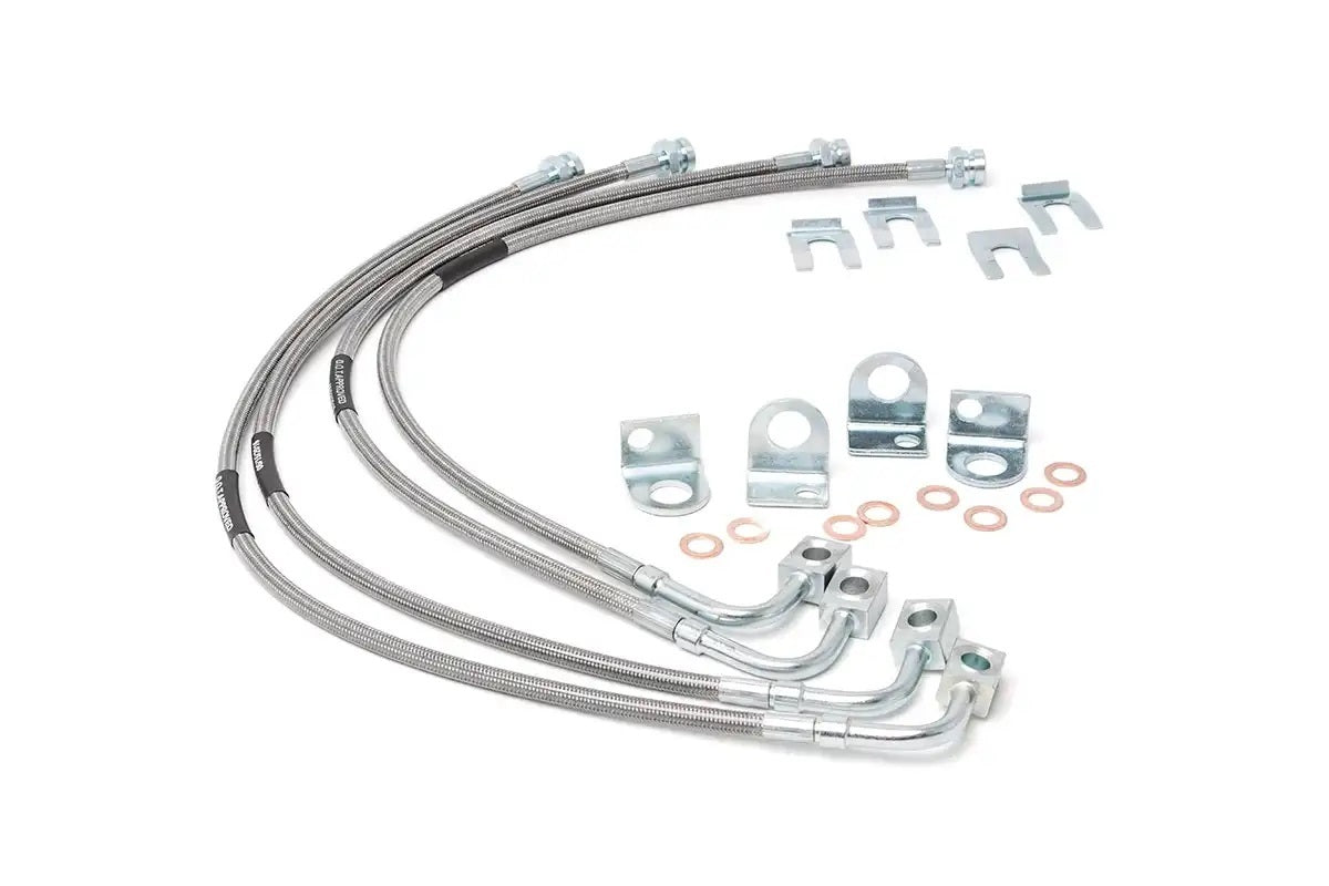 Brake Lines Stainless Brake Hose Kit - DOT Approved - PTFE Lined - Braided Stainless - 4 to 6 in Lift - Front / Rear - Jeep Wrangler JK 2007-18 - Kit