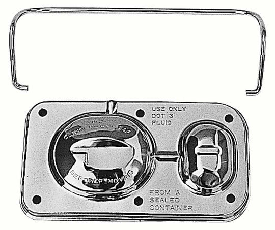 Master Cylinder Cover Master Cylinder Cap - Stock Replacement - 3 x 5.625 in - Single Bail - Steel - Chrome - GM Passenger Car 1967-80 - EachRegular price $17.99