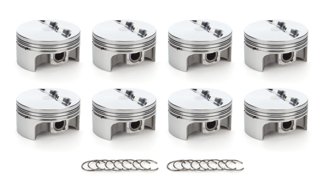 Piston - AutoTec - Forged - Flat Top - 4.125 in Bore - 1.5 x 1.5 x 3.0 mm Ring Grooves - Minus 5.00 cc - Coated Skirt - Small Block Chevy - Set of 8