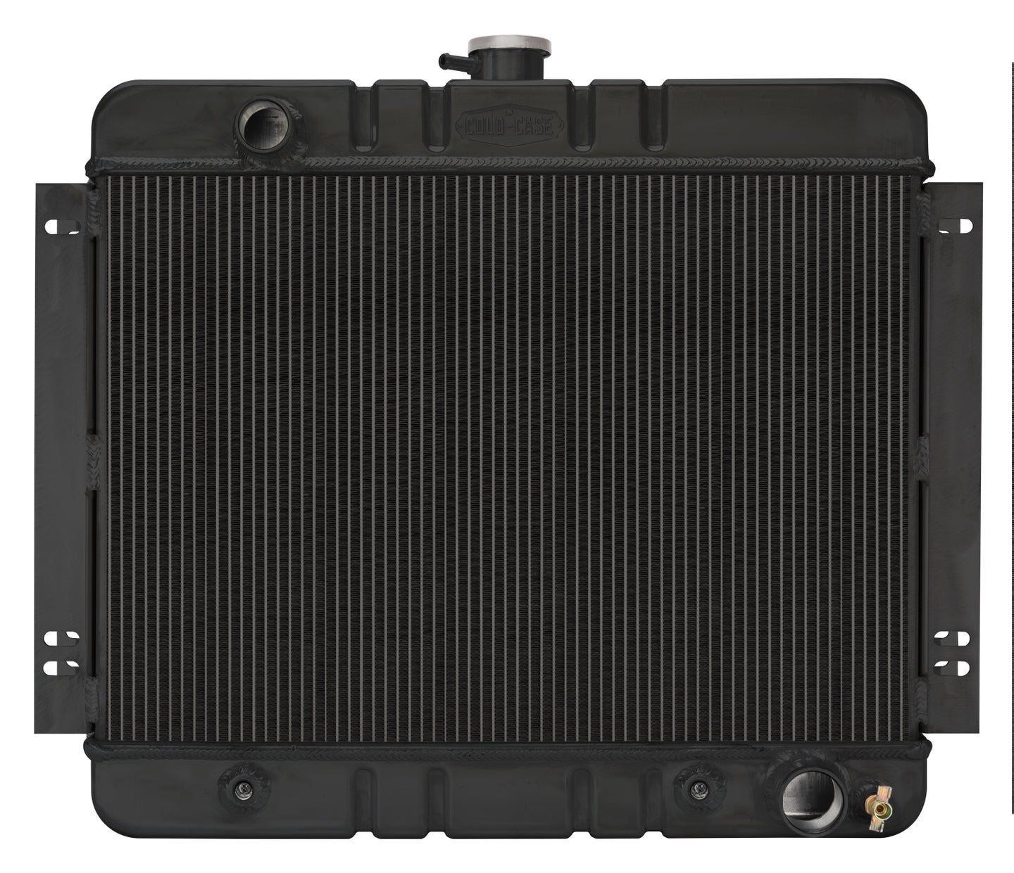 Radiator - Black Night Rider Series - 22.35 in W x 20.7 in H x 3 in D - Driver Side Inlet - Passenger Side Outlet - Aluminum - Black Paint - Automatic - GM X-Body 1962-67 - Each