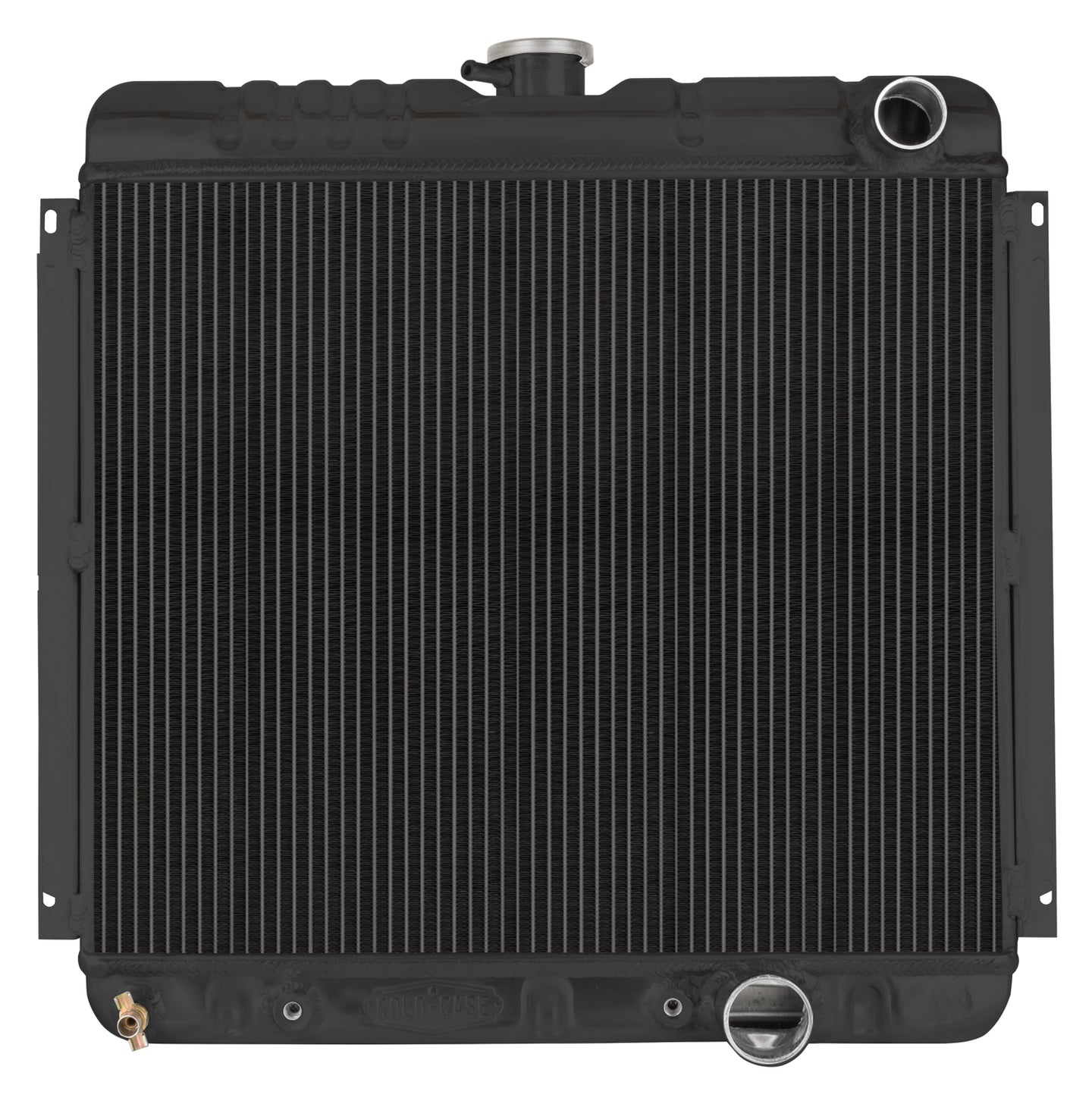 Radiator - Black Night Rider Series - 22.4 in W x 20.5 in H x 3 in D - Passenger Side Inlet - Passenger Side Outlet - Aluminum - Black Paint - Automatic - Small Block Ford - Ford Mustang 1967-70 - Each