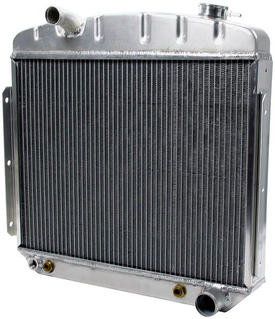 Radiator 1957 Chevy 6cyl w/ Trans Cooler Radiator - 23.25 in W x 23.25 in H x 2.25 in D - Center Inlet - Passenger Side Outlet - Oil Cooler - Aluminum - Natural - Chevy...Regular price $379.99