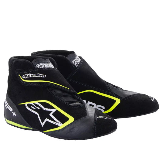 Shoes SP+ Black / Yellow Flou 9.5 Driving Shoe - SP+ - Mid-Top - SFI 3.3 - FIA Approved - Suede Outer - Nomex Inner - Black / Fluorescent Yellow - Size 9.5 - PairRegular price $249.95 -