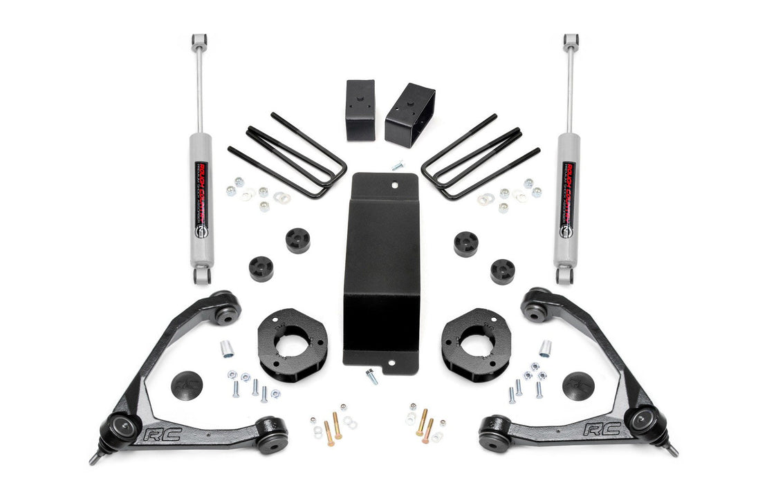 3.5in GM Suspension Lift Kit Suspension Lift Kit - 3-1/2 in Lift - Blocks / Hardware / Shocks / Skid Plate / Upper Control Arm - GM Fullsize Truck 2007-16 - Kit