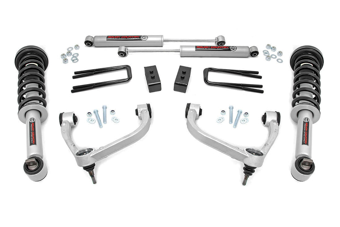 Suspension Lift Kit - Premium N3 Shocks - 3 in Lift - Blocks / Coil Springs / Hardware / Shocks / Struts - 4WD - Ford Fullsize Truck 2014-19 - Kit
