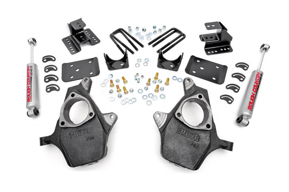 Lowering Kit - 2 in Front / 4-4.5 in Rear - Shocks / Spindles / Brackets / Hardware - GM Fullsize Truck - 1999-2007 - Kit