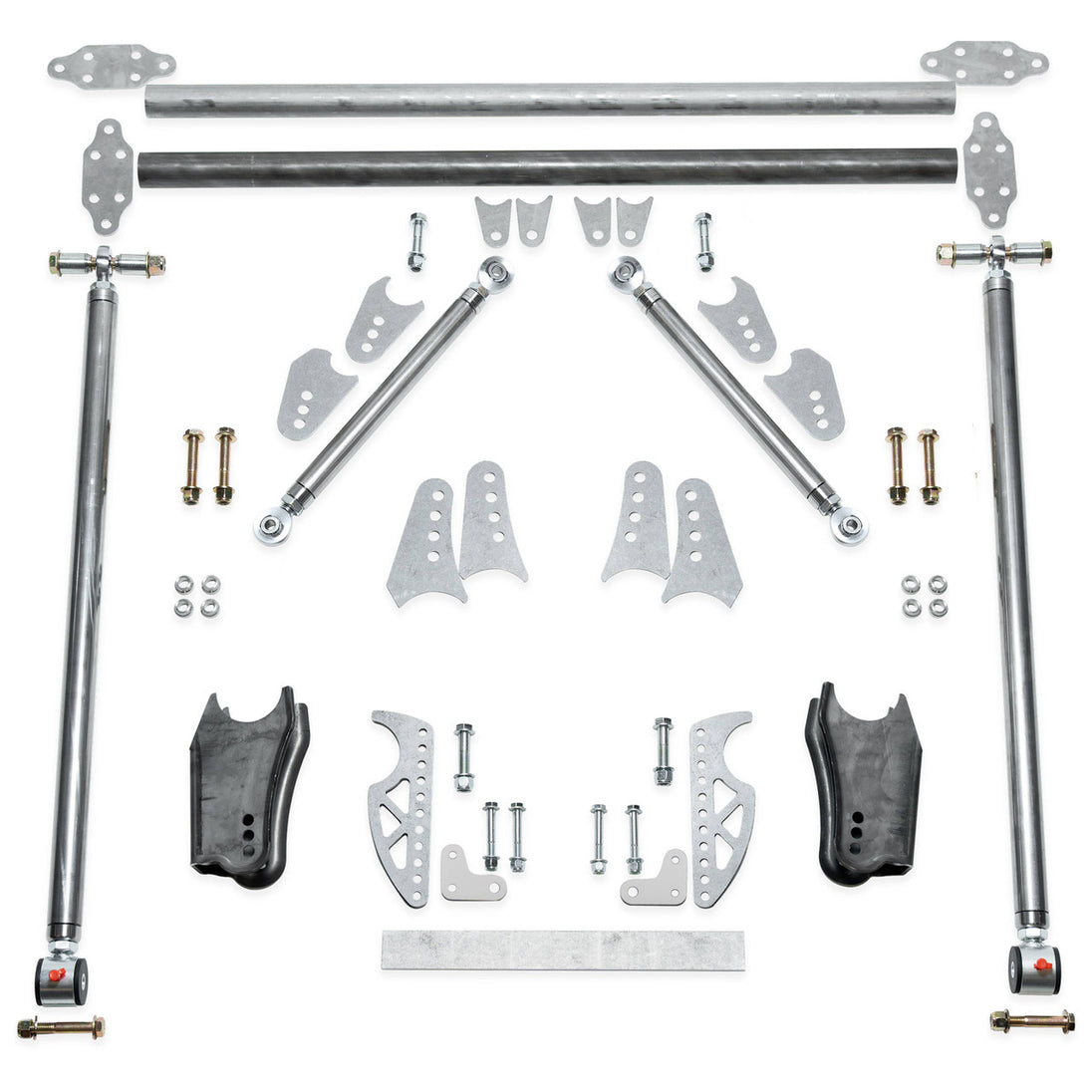 Rear 4-Link Triangulated No Shocks Suspension Handling Kit - 4-Link System - Brackets / Crossmember / Coil-Over Crossmember / Hardware / Trailing Arms - Steel - Natural - Kit