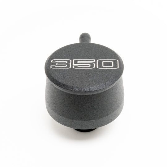 Valve Cover Breather 350 Logo Black Each Breather - Push-In - Round - 1-1/4 in Hole - PCV Valve - 350 Script Logo - Aluminum - Black Powder Coat - EachRegular price $54.99