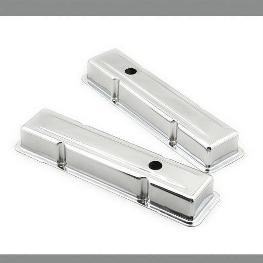 SB Chevy Short Valve CVR Valve Cover - Stock Height - Baffled - Breather Hole - Steel - Chrome - Small Block Chevy - KitRegular price $40.58 -