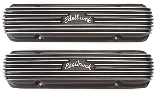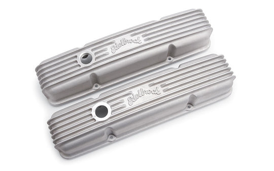 Valve Cover Kit Classic Finned SBC 59-86 Valve Cover - Classic - Tall - Breather Hole - Edelbrock Logo - Aluminum - Satin - Small Block Chevy - PairRegular price $255.95 -