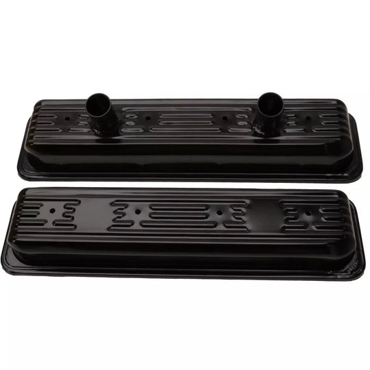 Valve Cover Kit SBC Circle Track Steel Black Valve Cover - Circle Track - Stock Height - Breather Tubes - Steel - Black Paint - Center Bolt - Small Block Chevy - PairRegular price $281.64 -