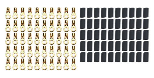 Vendor: QUICKCAR RACING PRODUCTS Ring Terminal #10 10-12 Ga w/Heat Shrink 50pk Ring Terminal #10 10-12 Ga w/Heat Shrink 50pk Ring Terminal - 12-10 Gauge Wire - Number 10 Hole - Heat Shrink Included - Copper - Set of 50Regular price $56.95